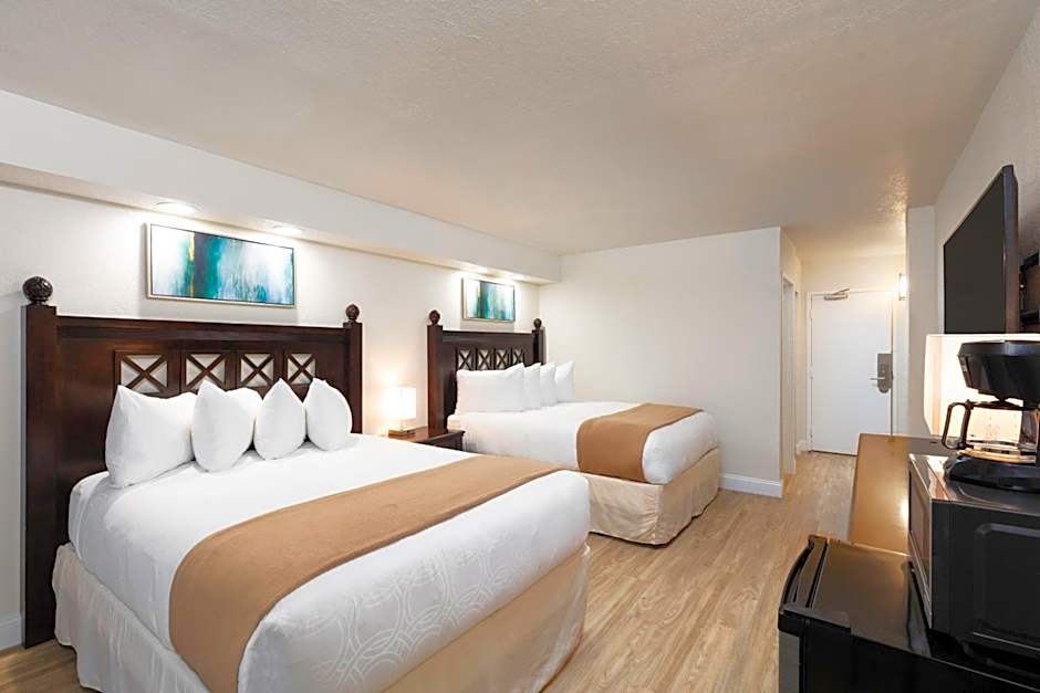 The Double Oceanfront Guestroom features two double beds, a full bathroom with tub/shower combination, mini refrigerator, coffee maker, cable television and a balcony view with full ocean view.
