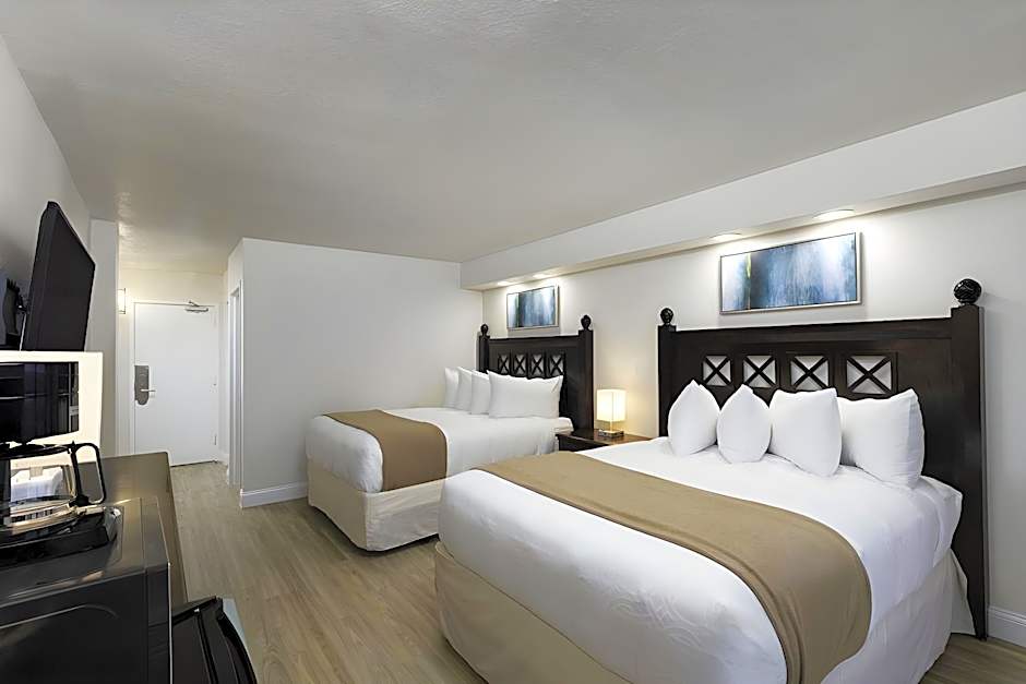 The Double Oceanfront Guestroom features two double beds, a full bathroom with tub/shower combination, mini refrigerator, coffee maker, cable television and a balcony view with full ocean view.